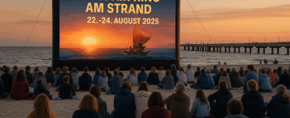 Vom 22. bis 24. August 2025, jeweils von 17:00 bis 22:00 Uhr, verwandelt sich der Seebrückenvorplatz (Erlebnis‑Seebrücke / Strand) in Heiligenhafen in ein magisches Open Air Kino. Die Veranstaltung richtet sich besonders an Familien und alle, die ein sommerliches Kinoerlebnis unter freiem Himmel suchen – mit liebevoll ausgewählten Kinder‑ und Familienfilmen, Kuscheldecken im Sand und dem beruhigenden Rauschen der Ostsee im Hintergrund.